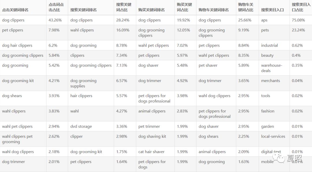 如上表,我们清晰的看到我们商品的购买关键词,点击关键词和搜索类目这三个重要信息。由此我们得出很多重要的信息如下:
