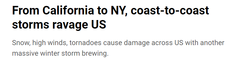 根据我从媒体和货代渠道了解到的消息,目前美国东西海岸都在遭受暴风雪肆虐,受影响的FBA仓库大部分集中在北加利福尼亚州、伊利诺伊州中部和东北部以及纽约州,包括SMF1、SMF3、SMF6、SMF7、SJC7、SJC8、SCK4等数十个FBA仓库在内,都是受灾较为严重的仓库。 暴风和大雪不同程度的损坏了当地的供电系统,甚至还有大片的房屋被暴风摧毁。