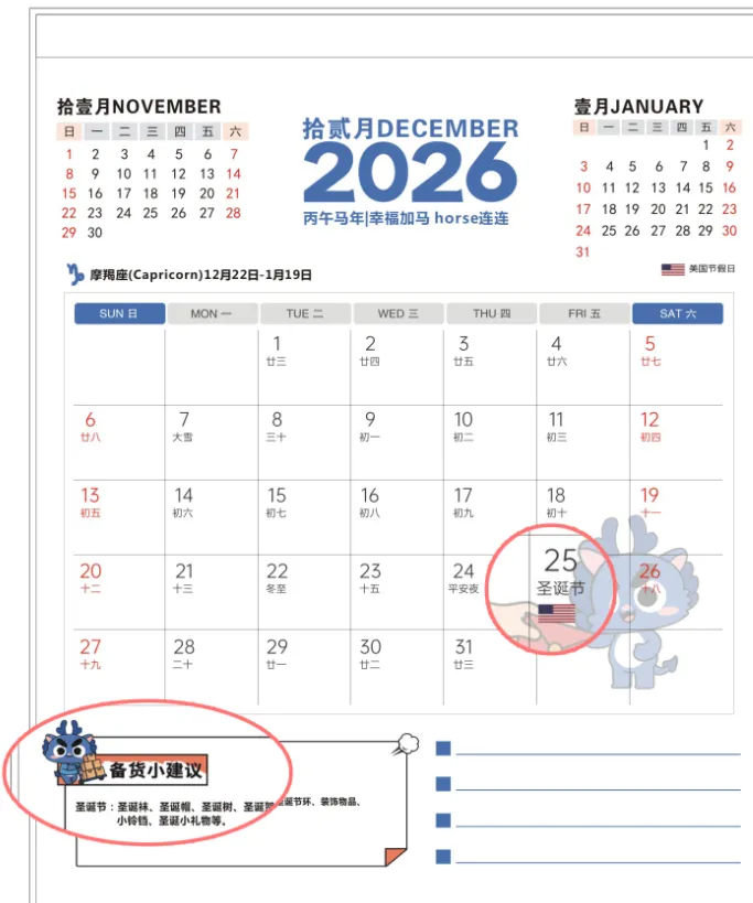 台历直接标注中/美假期 + 备货小贴士!贴心拉满,帮你提前锁死备货计划,大促旺季稳抓每一波红利!