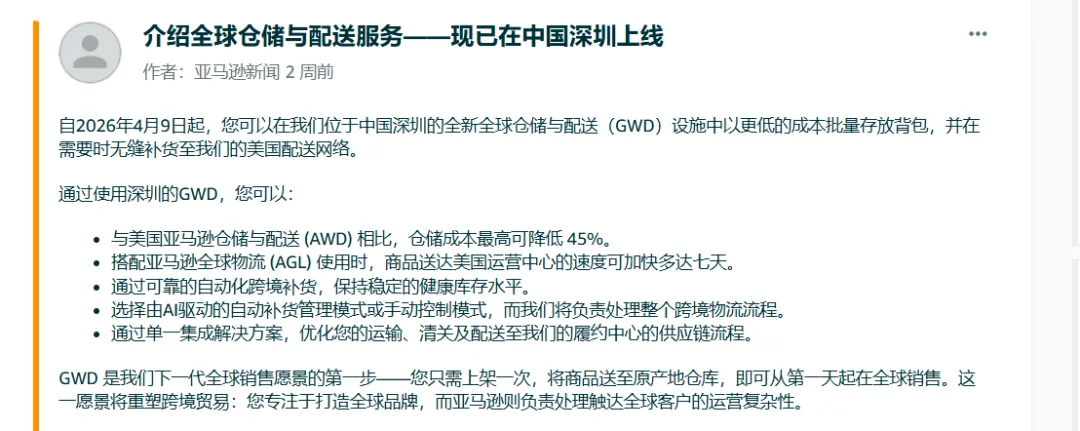 亚马逊GWD深圳仓开放后,卖家圈争论不休!