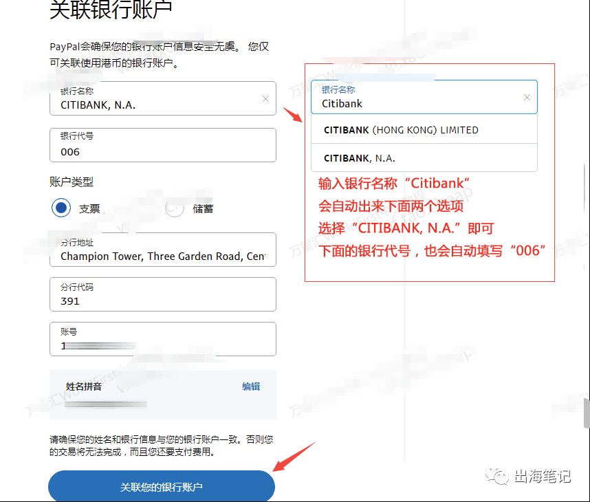 7、选择“关联美国或中国香港特别行政区的银行账户”