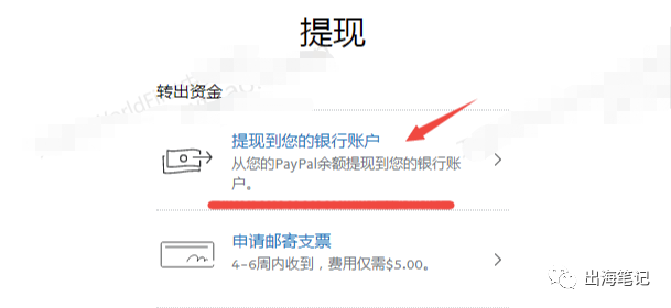 11、这个时候, 可以回到Paypal账户首页 - 点击“提现”