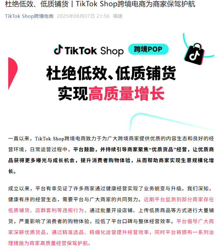 平台的新规恰恰为优质商家提供了更公平的竞争环境:当算法更青睐有特色、有口碑的商品,用心打磨产品的商家才能真正凸显价值。这与 TikTok 最初鼓励个人垂直账号的逻辑一脉相承 —— 无论是内容创作还是商品销售,“垂直深耕” 远比 “广撒网” 更有生命力。