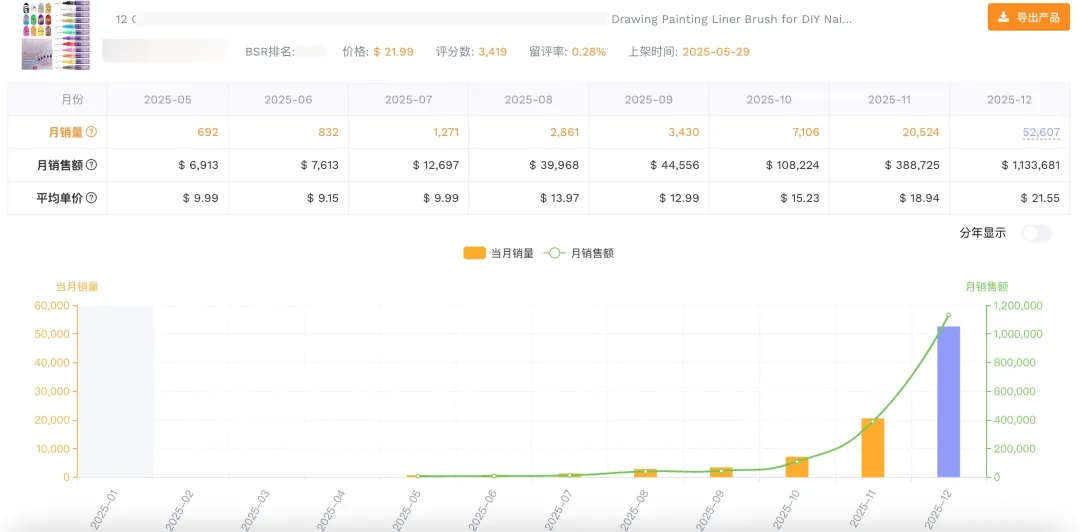 头部链接(就是排名第二的那个 FBA,上架半年的真实卖家),这两个月也涨幅惊人。