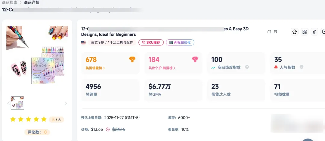 这是一个电商自媒体发的:美甲马克笔TikTok爆火 15天狂销135万国产DIY美甲马克笔借TikTok热潮在欧美爆单,TikTok相关话题超2770亿次浏览,单条种草视频获1250万播放,全球美甲用品市场预计2030年达152.6亿美元,跨境赛道潜力显著。