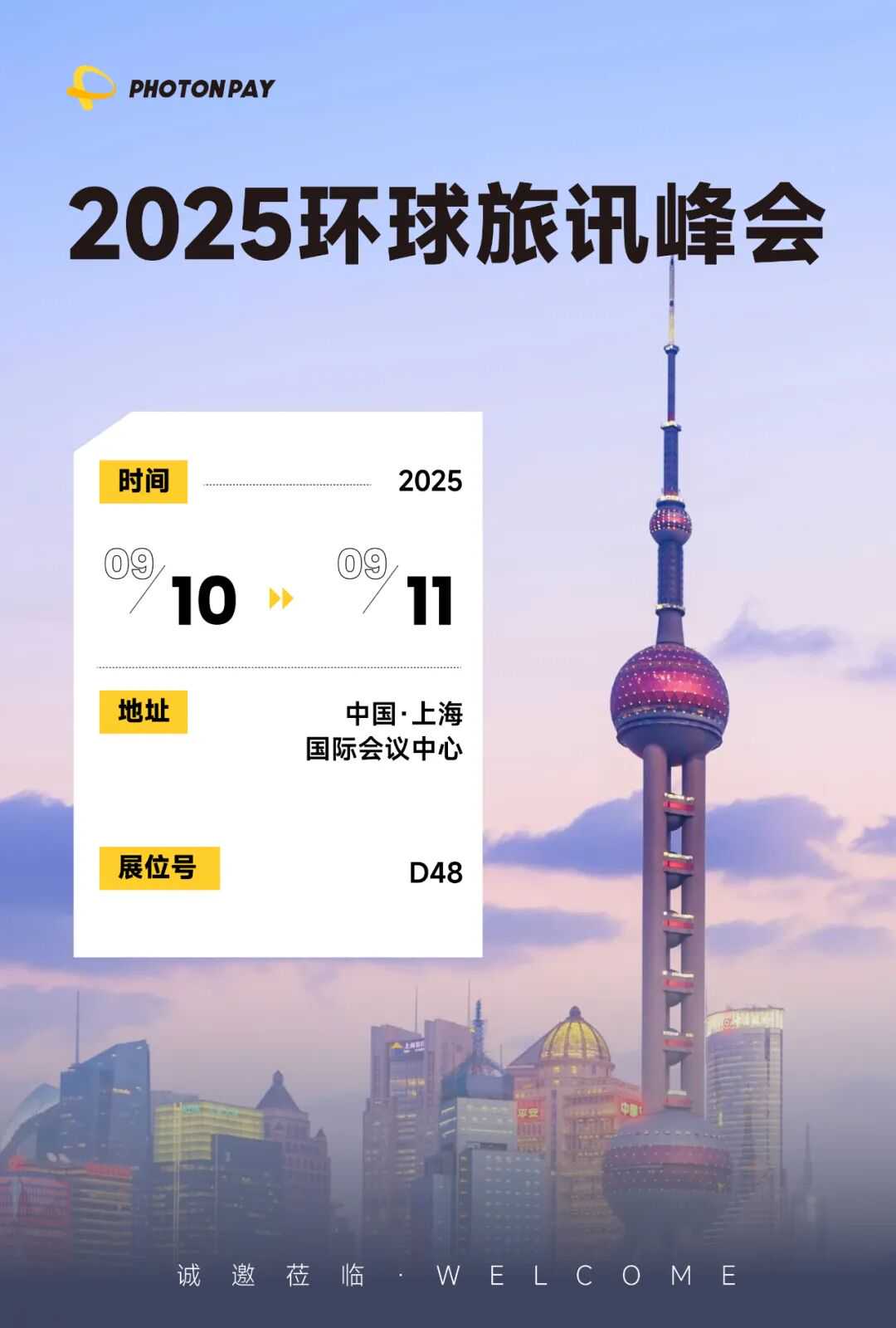 我们深知,每一笔支付背后承载的不仅是资金流转,更是企业效率、用户体验与全球业务拓展的可能性。9月10日至11日,我们诚挚邀请各位行业伙伴莅临PhotonPay光子易展位(D48号),面对面交流全球支付解决方案。无论您是正在探索出海的旅游企业,还是深耕海外市场的行业先锋,我们都期待与您携手,共探全球支付的新未来!