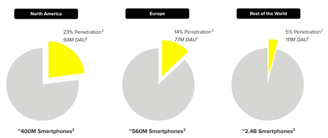(Snapchat 日活饼图;图片来源:Snapchat 2021 Q2 财报)