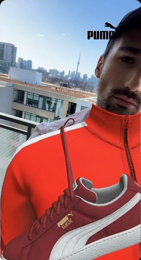 案例:为了吸引下一代 Puma 粉丝,同时留住原有品牌忠实用户,Puma 与 Snapchat 合作。通过 AR 体验广告,为其标志性的经典 Puma Suede 鞋款提高知名度并产生有趣的怀旧情绪,并提升品牌好感度。