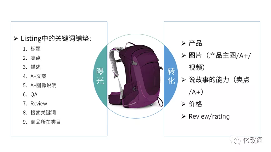 对于消费者而言,网上购物平台上的产品listing即代表了我们的产品。在产品转化方面,listing的质量很大程度上起到了根本作用。因此,在拥有一条优质listing的前提下再去考虑投放广告活动,更有可能产生锦上添花的推广效果,反之,则可能会对广告的权重和产品的转化产生循环的负面影响。对此,我们可以从以下多个切入点着手进行listing的优化工作: