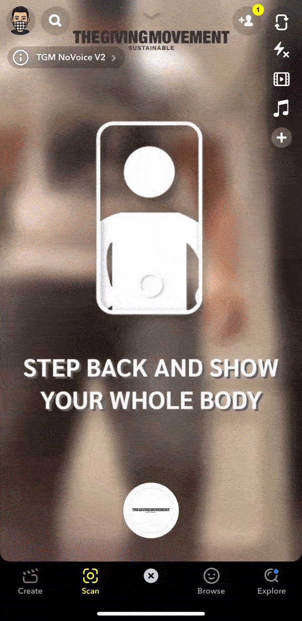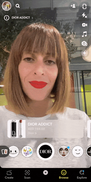 通过 AR 体验互动。 轻触或长按快门按钮来拍摄照片或视频,然后分享到 Instagram 快拍。这样更多人能通过分享的快拍看到您的广告。 轻触置于相机底部的行动号召按钮,继续访问相应网址。例如,您可以在此提示用户访问您的网站,以详细了解或购买商品。