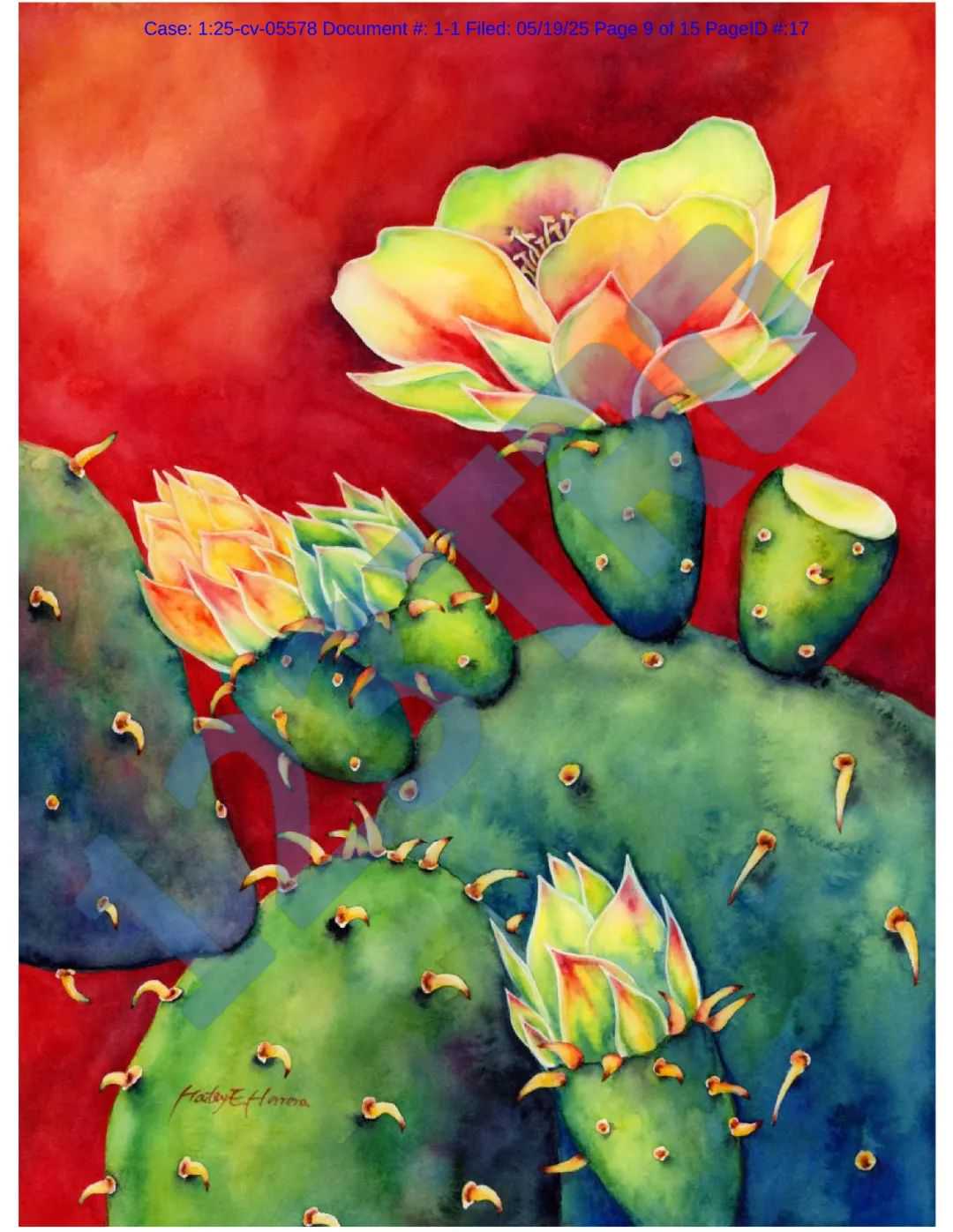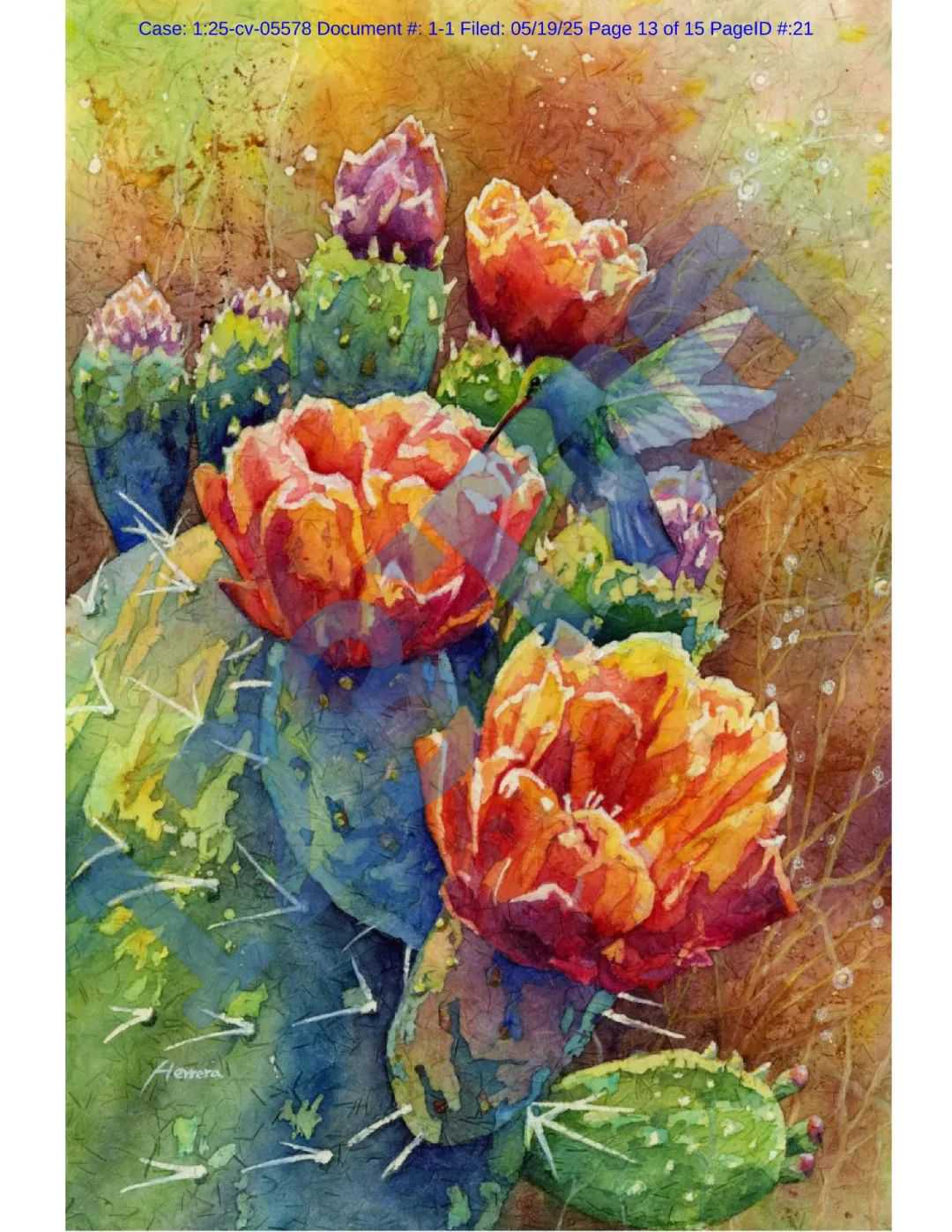 原告Eunseuk Oh是韩裔水彩蜡染画家,他擅长用水彩蜡染技法创作,平时用艺名Hailey Herrera进行艺术创作