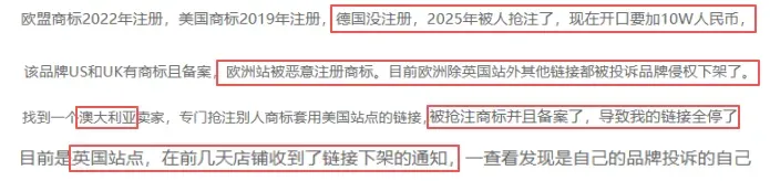 值得注意的是,被抢注中国商标的卖家表示抢注者名下还注册了不少商标,许多都是热卖的亚马逊链接的商标,极有可能是职业抢注者的手笔。