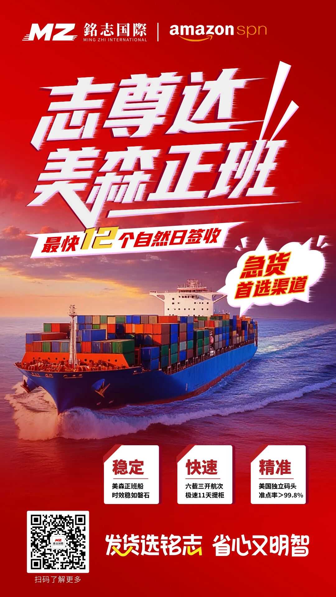 海运方面,铭志建议如果想要快且稳,那可以选择美森快船来发,时效最快12天左右,CMA、合德以星快航,性价比高的20天左右也能签收。