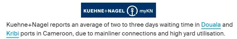 德迅最新报告指出:喀麦隆杜阿拉&克里比目前船舶平均等待时间已达2至3天。