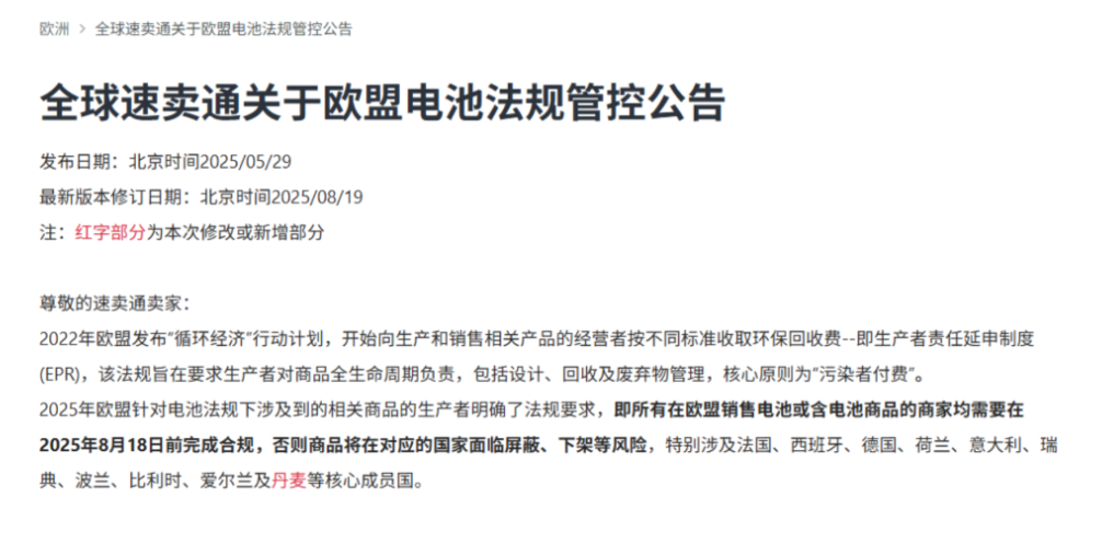 速卖通丹麦电池法强制合规!8月18日起未注册店铺将面临下架风险,海象跨境一站式解决!