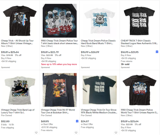 新品牌Cheap Trick摇滚乐队立案,卖家立即下架相关产品