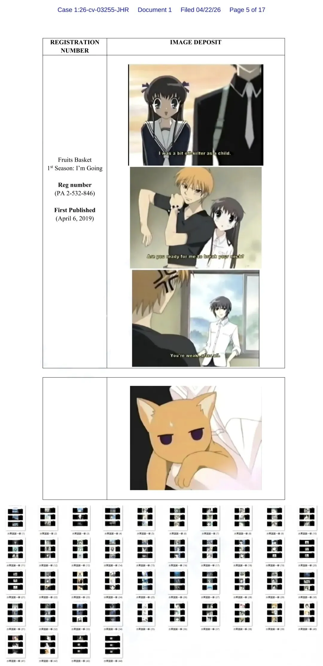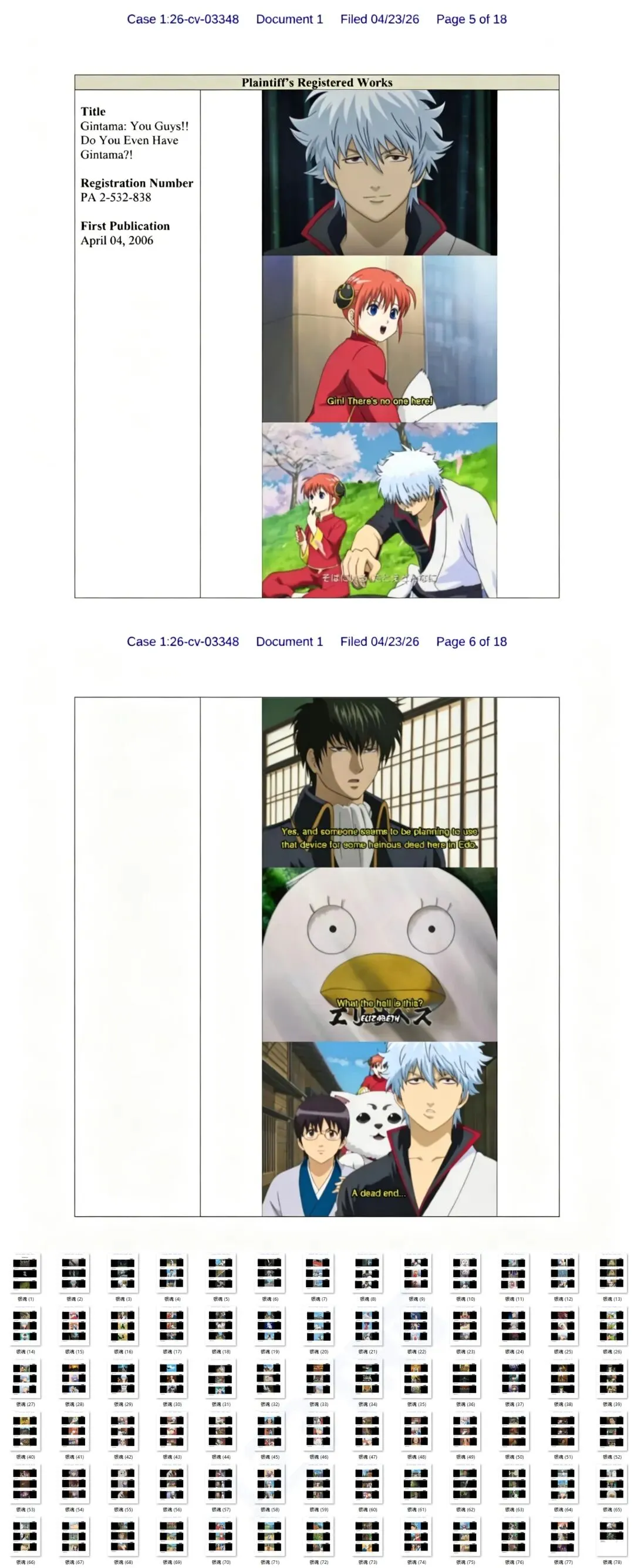 据美国法院官网的最新资料,我们关注到日漫大户东京电台最近再度出手,委托Whitewood律所代理了《水果篮子FRUITS BASKET》和《银魂GINTAMA》旗下两个热门大IP,并已在美法院发起立案【26-cv-03255,26-cv-03348】东京电视台可不是第一次维权,之前就对《火影忍者》《死神》《黑色四叶草》等多个经典日漫发起过多轮TRO,冻结了数千家店铺,可见维权力度一直都在加码,大家一定记得不要再卖它旗下的IP的周边产品了!