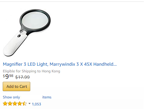 放大镜并不是我们日常玩的那种简易的放大镜,这种适合老年人用的放大镜成像更清晰,还配有LED灯珠,即便是比较暗的场景下也可以正常使用。如果可以开发到更加好用的升级版,小编认为将会是个比较好的潜力产品。
