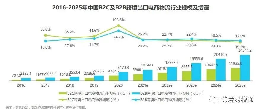 据研究报告显示:目前,中国是全球最大的B2C跨境电商交易市场,全球26%的交易发生中国。2020年B2C跨境电商出口物流行业规模超过4000亿元,而2020年B2B跨境电商出口物流规模超过8000亿元。