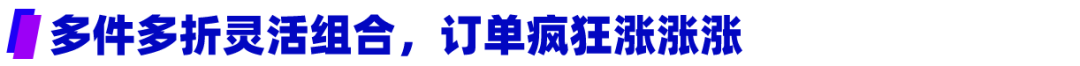 多件多折阶梯式促进消费的特质,是提高客单的利器。商家在设置时,可以针对一些特殊的产品进行设置。例如闪购产品、清仓产品、日常消费品或者互补品等,再叠加包邮等其他玩法让促销活动更具吸引力。