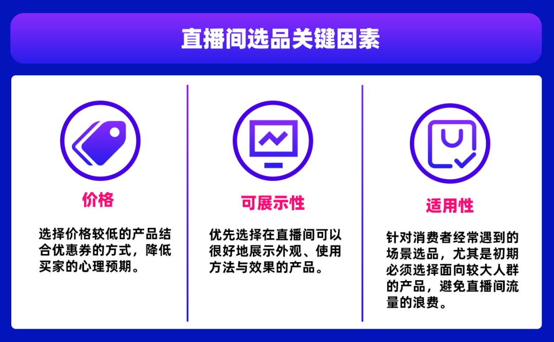 经过多轮的种草与广告投放,流量池蓄满,大促当天高质量的直播可以有效进行流量收割,提高转化,实现订单暴涨。然而,想要打造高关注高销量的直播间,“好货”是关键,直播间选品很重要。