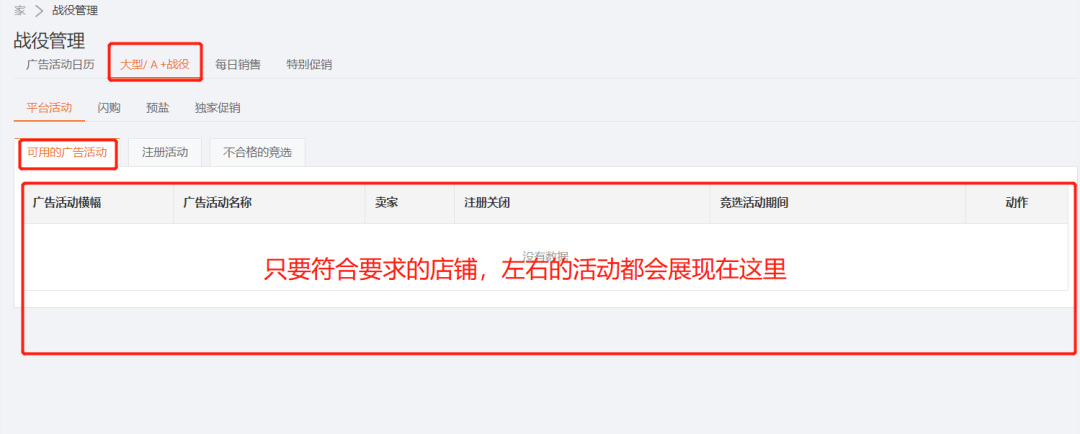 1、大促时期活动密集,商家要对报名环节进行把控,防止漏报。具体可以到后台“战役管理”一栏查看活动提报情况。