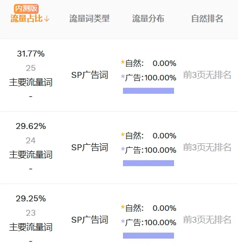 关键词排名太靠后,无法获取有效的自然曝光,导致流量结构极不健康。
