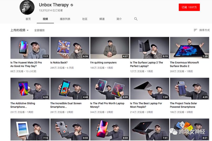 3C领域最大的YouTuber,Unbox Therapy。坐拥1337万粉丝,随手一个视频的观看数至少是上百万,很容易掀起一小波购物潮。
