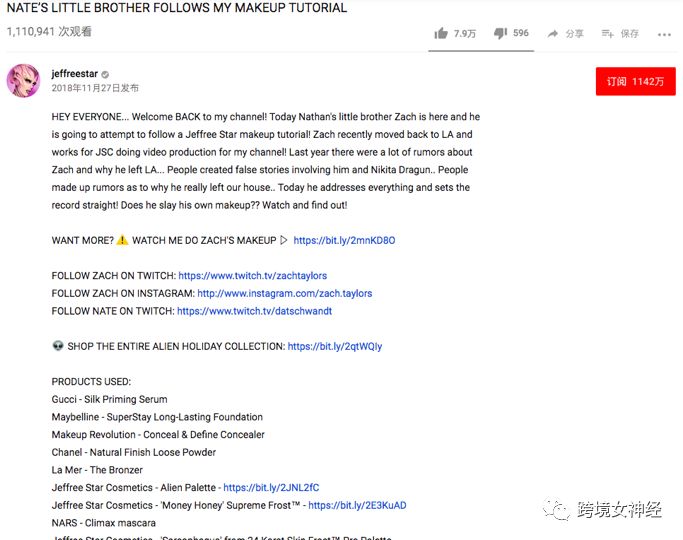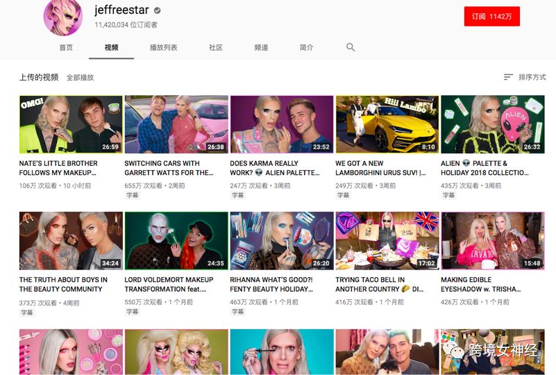 Jeffree Star, 人称J姐,是一个集1142万粉丝于一身的男性美妆网红,性别男,