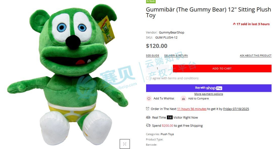 (图片来源:Gummibär (The Gummy Bear) 12" Sitting Plush Toy – GummyBearShop引用日期:2025-7-15)