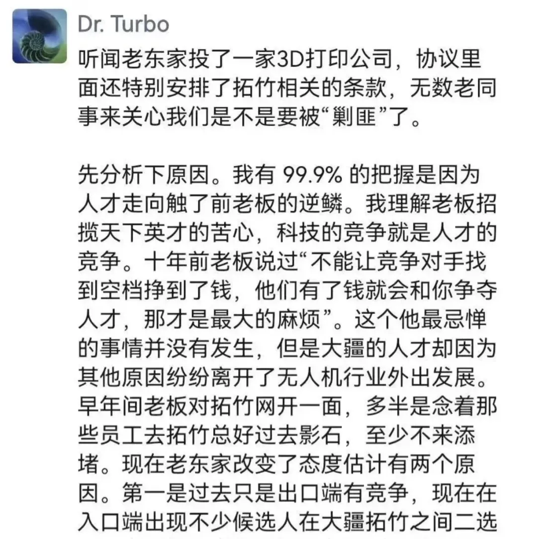 陶冶出身于大疆,其创业团队中也有不少成员来自大疆,拓竹成立之初就被列入大疆的竞业名单。