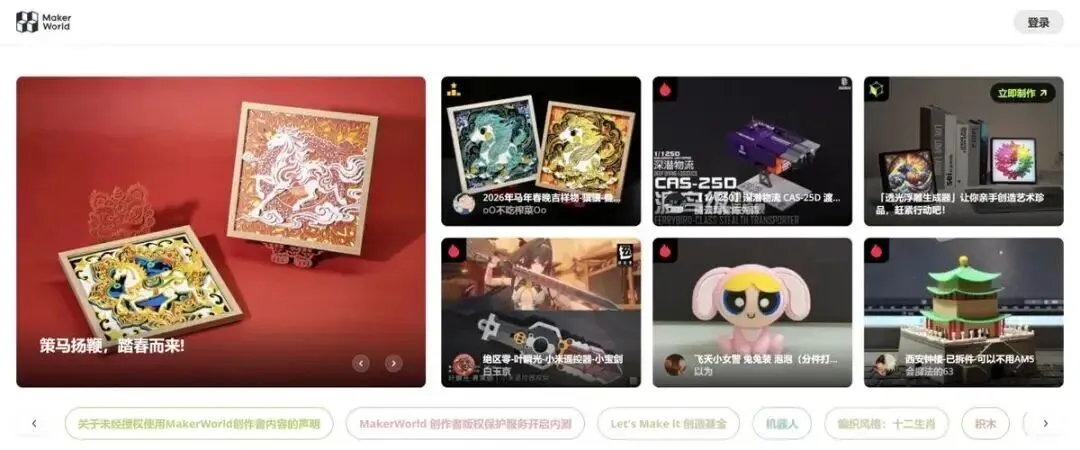 为提升用户粘性,拓竹在独立站内搭建“MakerWorld”社区,提供免费模型下载、设计竞赛和用户交流等服务。