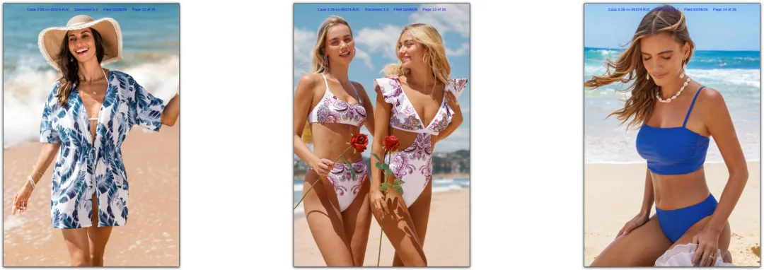 原告NANJING KAPEIXI NETWORK TECHNOLOGY CO., LTD是南京的一家服装和泳装公司。CUPSHE 成立于2015年,以其高性价比、时尚的泳装和度假休闲服饰而闻名,尤其在北美市场非常受欢迎。旗下的模特照版权超1000张,未经授权不能使用!