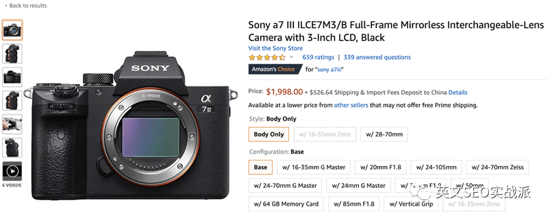 然后,站长选择了Sony这个小一点的细分市场,这就意味着所有佳能、索尼等相机持有者都不是他的目标受众。