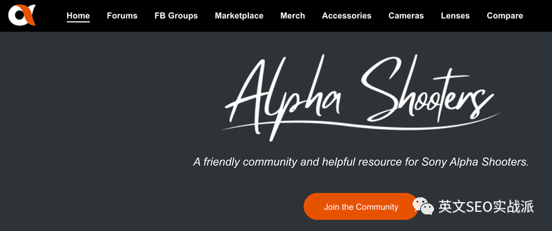 Alpha Shooters目前的内容包含以下8个版块,看Tim的排序、及首页的Join the Community这个大大的Call to Action,不难发现他的首要目标是让新访客进入他的社交圈子(Forums和FB Groups)。