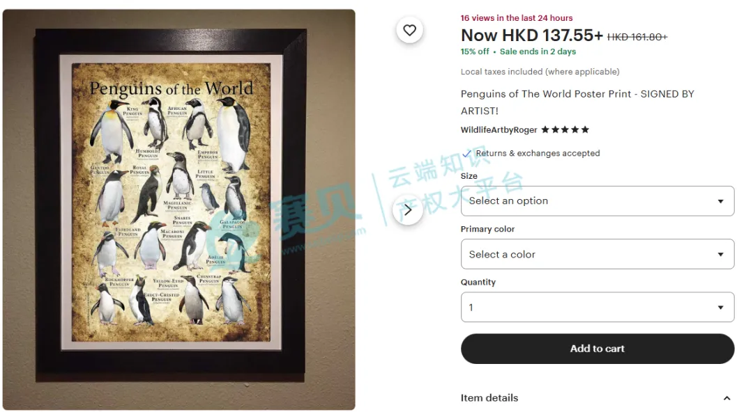 此次维权的是Roger Hall联邦注册的21项野生动物主题插画版权作品,具体包括:《世界鲨鱼(复古版)》《北美海钓鱼类(复古版)》《美国鹌鹑》《世界企鹅》等动物主题系列插画;《毒箭蛙》《世界淡水龟(复古版)》《北美青蛙(复古版)》等两栖爬行动物主题作品;《美国有毒蛇类(复古版)》《北美箱龟》《世界马种》《世界变色龙(复古版)》等特色物种插画;还涵盖蜂鸟、章鱼、黑犀牛、蜻蜓、缅因州陆地哺乳动物、世界蜥蜴、世界陆龟(复古版)等多个细分品类的艺术作品。赛贝提醒跨境卖家,未经授权不得擅自使用,以免引发侵权风险。