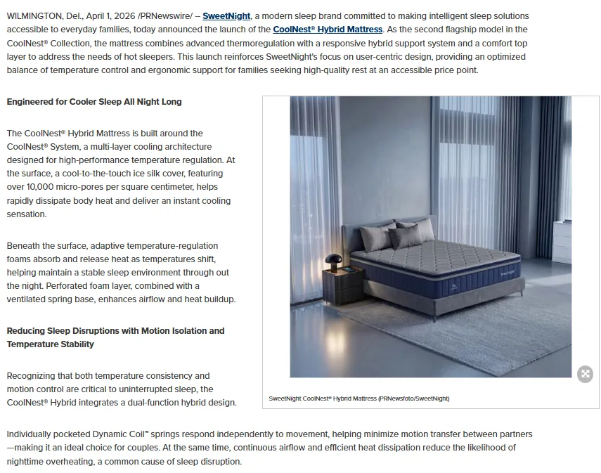 SweetNight的聪明之处在于,它没有陷入“性价比”的泥潭,而是找到了一个高频、具体且可被技术化的痛点:热睡困扰(Hot Sleeper)。