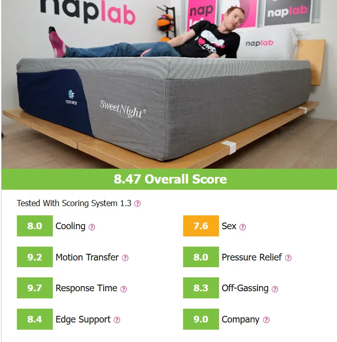 合作深度:不仅仅是送测,而是深度参与评测流程。以NapLab为例,其评测包含凉感、动态隔离、响应速度、边缘支撑等多项客观量化测试。评测结果被直接用于官网和广告。NapLab给出的8.47/10分、9.2分的抗干扰评分成为极具说服力的信任背书。