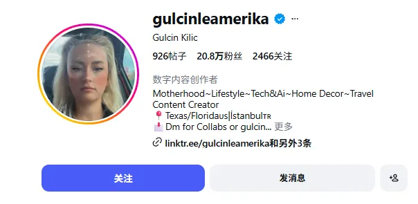 @gulcinleamerika 是北美本土深耕家庭生活赛道的垂类达人,坐拥 20.8 万粉丝,内容主打真实可感的家庭场景种草与生活方式渗透。受众与 SweetNight 家庭客群高度匹配,是品牌触达北美家庭市场的核心触点。