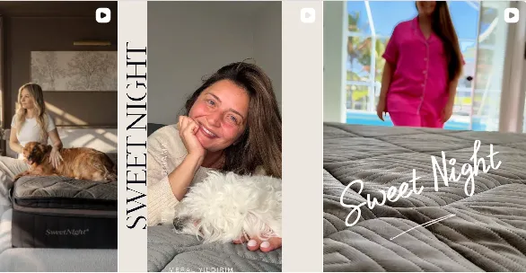 视频以第一视角的真实家庭体验,自然带出 SweetNight CoolNest 床垫。整条 Reel 没有堆砌晦涩的技术参数,而是把 PCM 凉感调温技术、透气冰丝面料这些硬核卖点,转译为 “告别夜间过热、不用再翻来覆去、云朵般柔软、整夜深度安睡” 的用户体感语言;更用 “儿子换上这款床垫后,终于能睡完整整一夜” 的真实家庭故事,让内容彻底摆脱了广告感 —— 比起单纯的产品售卖,它更像一份能提升全家幸福感的卧室睡眠升级方案,也帮 SweetNight 在用户心里,完成了从 “功能性床垫产品” 到 “生活方式型睡眠品牌” 的认知升级。