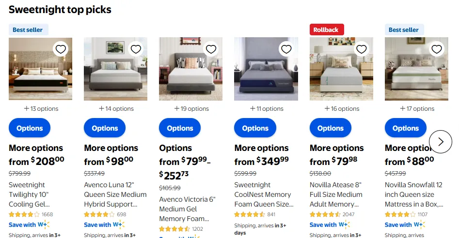 对于在独立站完成教育、但仍习惯在亚马逊下单的用户,SweetNight以“Top Seller”的身份承接流量。目前“已进入 Amazon、Wayfair、Walmart、Home Depot、Target、Lowe’s 等主流零售平台分发,并在 Walmart/Wayfair 沉淀出较高评分与评论规模。