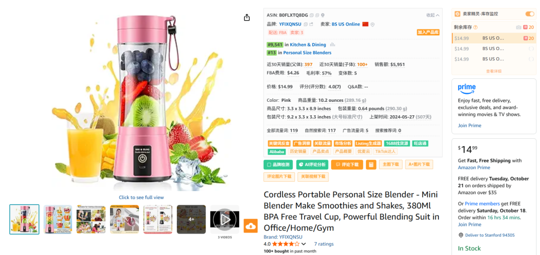 那怎么找到它?其实方法简单到有点侮辱智商。我们不需要去猜,直接去“偷”就行了...从你最眼红的那个竞品身上“偷”。我们以下方“portable blender for travel”为例。