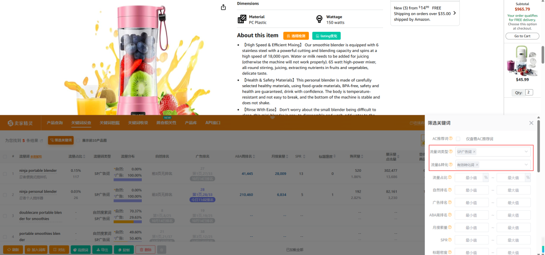 举个例子,你卖个榨汁机。你发现竞品的转化词里,有“portable blender for travel”,也有“small blender for smoothies”。