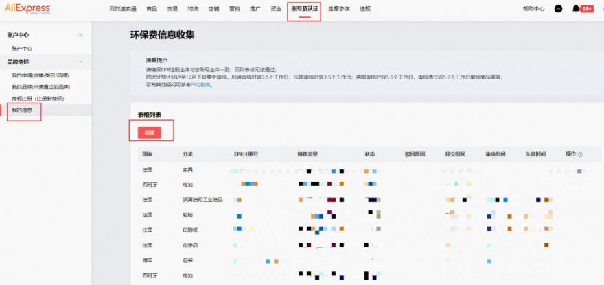 操作路径:商家后台→账号及认证→我的信息→欧洲环保费注册号申报。您可以通过创建新的EPR账号,完成注册号的登记。平台通过审核后,将在3-5个工作日恢复商品正常售卖/停止平台代扣代缴。