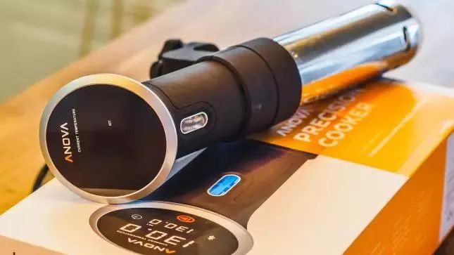 Anova烹饪器将真空烹饪流程带入家庭,将食物放在真空塑封袋里,进行烹调。