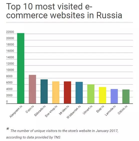 俄罗斯最受欢迎的十大网站除了速卖通和eBay以外全是俄本土企业,可见俄罗斯电商可挖掘潜力之巨大,由于本土企业的不确定性,建议想进驻俄罗斯电商的卖家可先从速卖通和eBay入手。