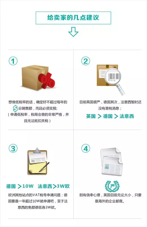目前欧洲电商市场VAT形势越发严峻,已经意味着全额征税是不可逆的趋势,目前合规缴税是大势所趋,中国跨境卖家在VAT问题上,早日阳光化,才能走的更长远。