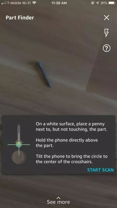 要开启“Part Finder”,用户只需打开亚马逊手机客户端,然后选择位于右上角的相机图标,再点击点击屏幕底部并选择“Part Finder”即可。