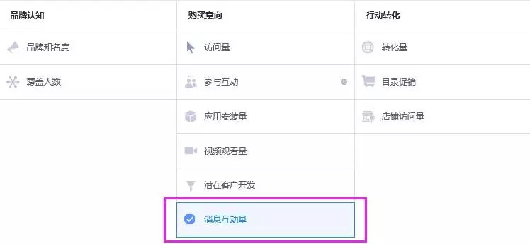 投放Click-to-Messenger广告,首先广告系列处的广告目标选择“消息互动量”。