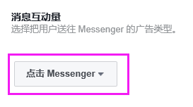 其次,广告组处,选择把用户送往Messenger的广告类型,选择“点击Messenger”。